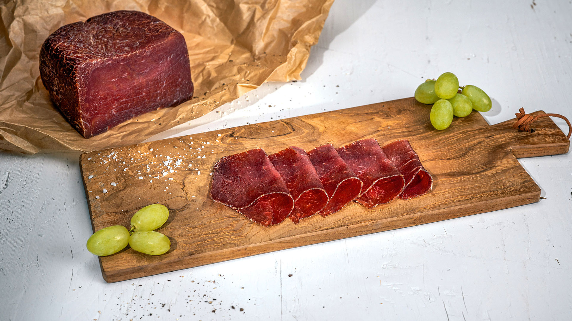 Bündnerfleisch is a low-fat product, with a fat content of just 2 to 4%. When combined with the high protein content, this means you feel full for longer without having to consume too many calories. This makes it an ideal snack between meals, or an everyday source of energy.