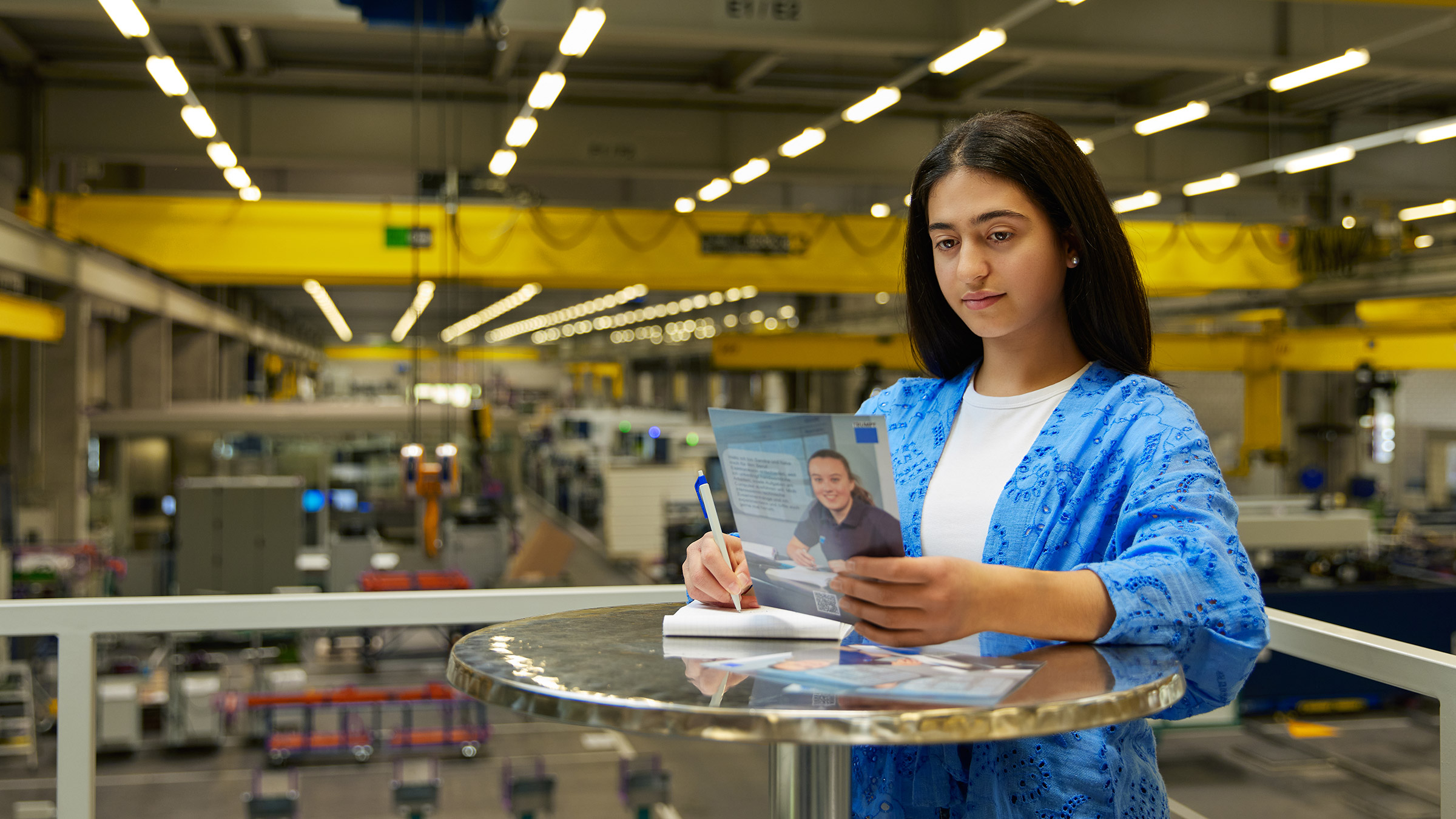 There is a glass cube in the middle of the production hall. That’s where Ribana’s workstation is located. The 17-year-old has an important mission: more women in tech professions. “It irritates me that people still distinguish between men’s professions and women’s professions. I want to encourage young women to complete a technical apprenticeship. That’s what I’m fighting for.” In line with the company’s motto – “Trusting in brave ideas” – Ribana has been tasked by management with living out her mission. She designs flyers and aims to conduct workshops in schools. Currently, she is writing a script for a video. “I want to let female technical apprentices speak in the video.” The fact that her workstation is located right in the middle of the male-dominated production area provides her with additional motivation. “I want to change the picture that I see here every day.” Her goal? “There are currently six female apprentices here. We’d like to increase this number to ten by the year 2023.”