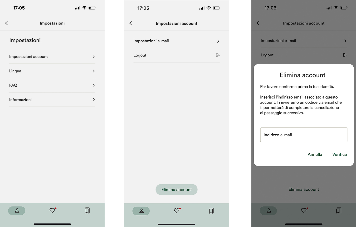 - Nella sezione IMPOSTAZIONI ACCOUNT puoi eliminare il tuo account in qualsiasi momento e in modo semplice.
